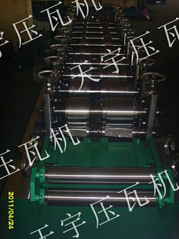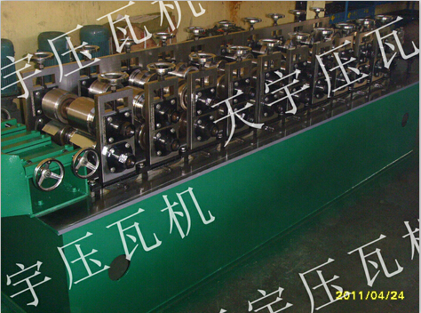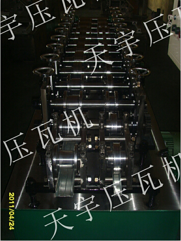 各型號(hào)機(jī)組龍骨機(jī)上調(diào)換不同規(guī)格的軋輥能軋制出不同規(guī)格的型材,龍骨機(jī)機(jī)組一般后用卷料(帶鋼)按型材的展開(kāi)縱剪后如:普碳鋼卷帶、黑色鋼卷帶、不銹鋼帶通過(guò)多對(duì)軋輥連續(xù)輥壓一次成型各種型材。一機(jī)多用,自動(dòng)定尺型材長(zhǎng)度,切斷。