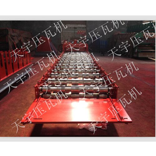 新型竹筒琉璃瓦設(shè)備生產(chǎn)過程如下:彩色鋼板進(jìn)入輥道成型部分,成型后到壓型部分,壓成等距離一節(jié)一節(jié)的,切刀負(fù)責(zé)定長(zhǎng)切割。